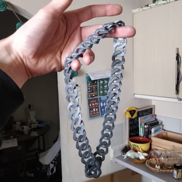 Projet de modélisation algorithmique de la production d'une chaîne en sauterelle. De nombreux aspects de la forme peuvent être modifiés à l'aide de curseurs.