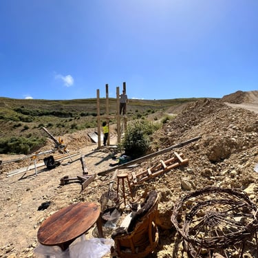 Situé dans une carrière en activité dans le sud-ouest de l'Angleterre. L'idée était de construire un avant-poste désertique inspiré de Mad Max pour accueillir notre héros, le vagabond.