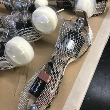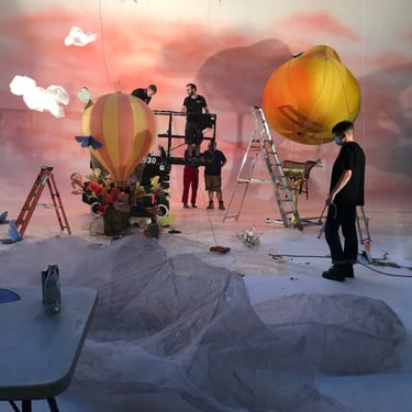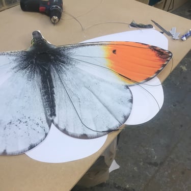 Avec des papillons robotisés en papier et en plastique, des nuages en polypropylène thermoformé et divers accessoires liés aux montgolfières. Les sacs pour les ballons ont été sous-traités.