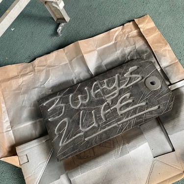 Présentoir destiné à être utilisé dans les vitrines des magasins et dans les pop-ups. Un élément clé de l'ensemble de reconnaissance de la marque pour mon projet 3 ways 2 life, la forme est basée sur un pendentif d'étiquette de preuve que je fais depuis un certain temps, mon modèle 3D existant a été redimensionné et modifié pour utiliser un texte déposé, permettant aux pièces de bijoux de s'asseoir à l'intérieur du texte.