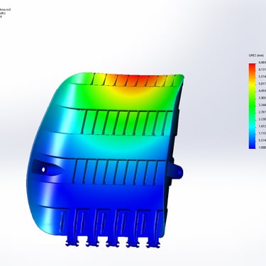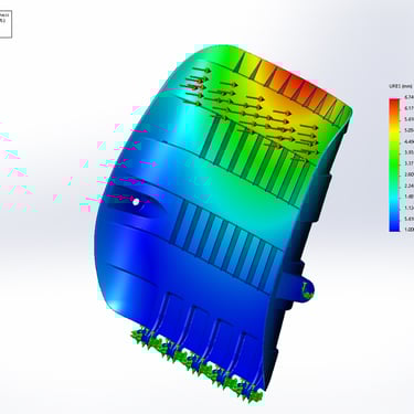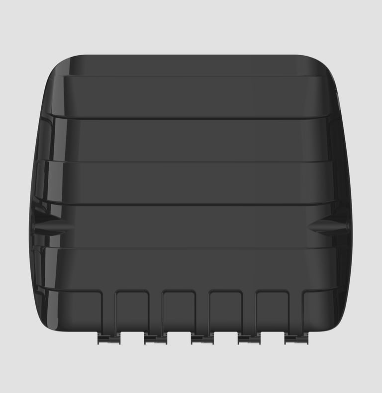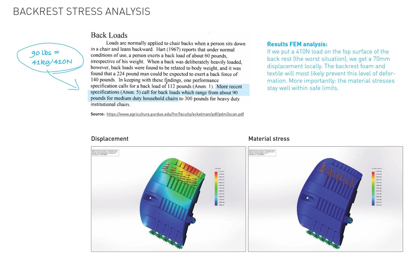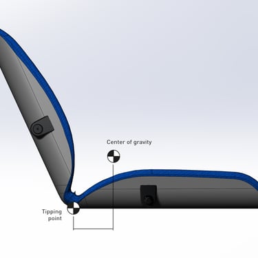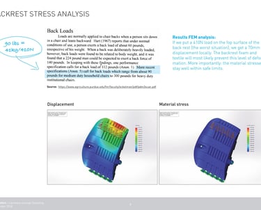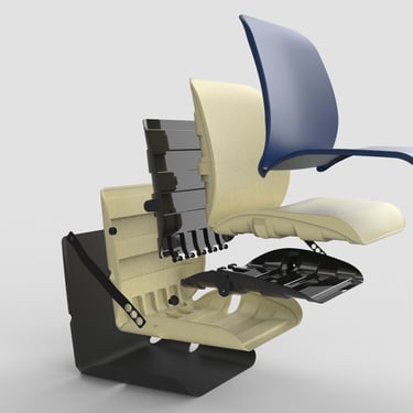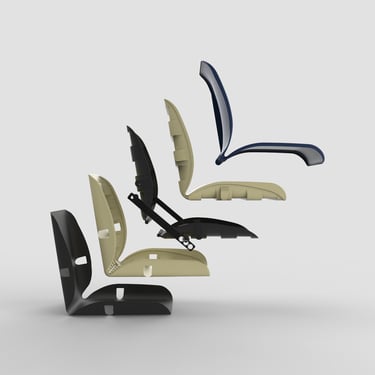Extensive simulation load testing and several redesigns were neccesary to produce a component that could provide the neccesary rigidity while maintaining uniform wall thickness. The same component is used as both base and backrest, minimising manufacturing costs.